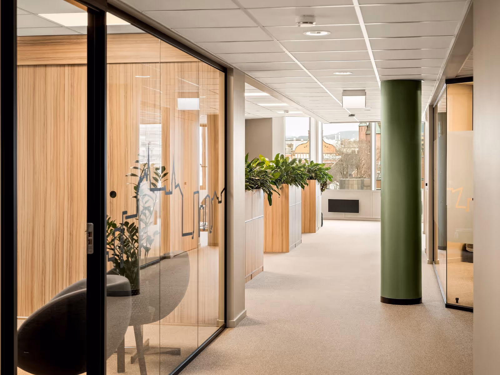 Kontorlokalene i Ibsenkvartalet byr på moderne fasiliteter og en svært god arbeidsopplevelse. Store vindusflater gir rikelig med dagslys og en flott utsikt over Oslo sentrum, noe som bidrar til et inspirerende og behagelig arbeidsmiljø gjennom hele dagen.