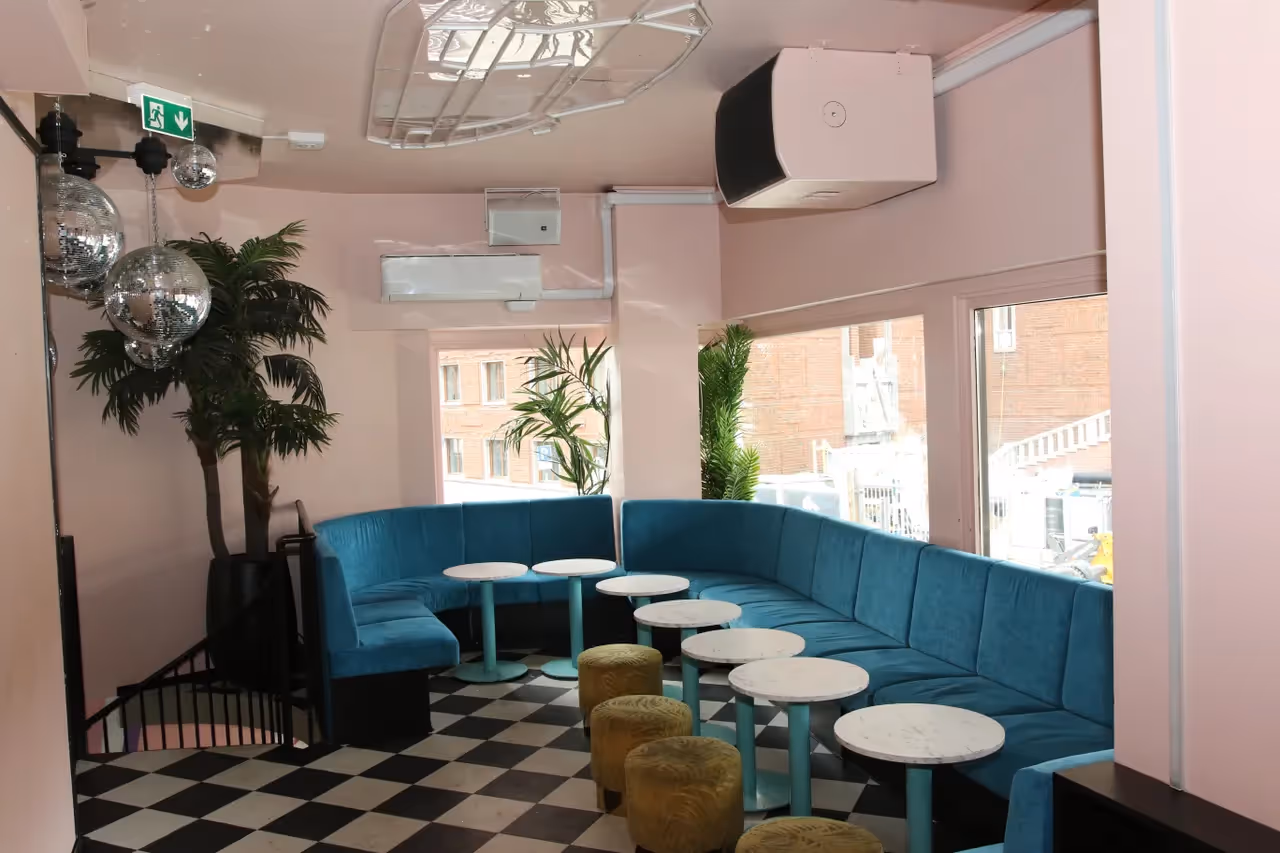 Fullt innredet bar/serveringslokale med mulighet for stor uteservering. Kan leies ut "as is" med overtakelse av både møbler og teknisk innredinger