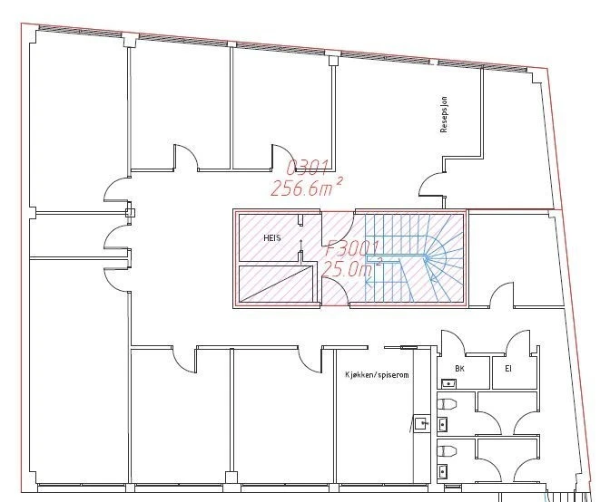 Eiendommen ligger sentralt plassert i Grensen, en attraktiv nabogate til Karl Johans gate. Lokalet i tredje etasje, er på 306 kvm brutto / 256 kvm netto, og passer for deg som ønsker et funksjonelt og sentralt lokale. Det har tidligere vært legekontor og inneholder 5-6 behandlingsrom, alle med vask, samt en praktisk resepsjon med venterom og et hyggelig pauserom med kjøkken for ansatte.