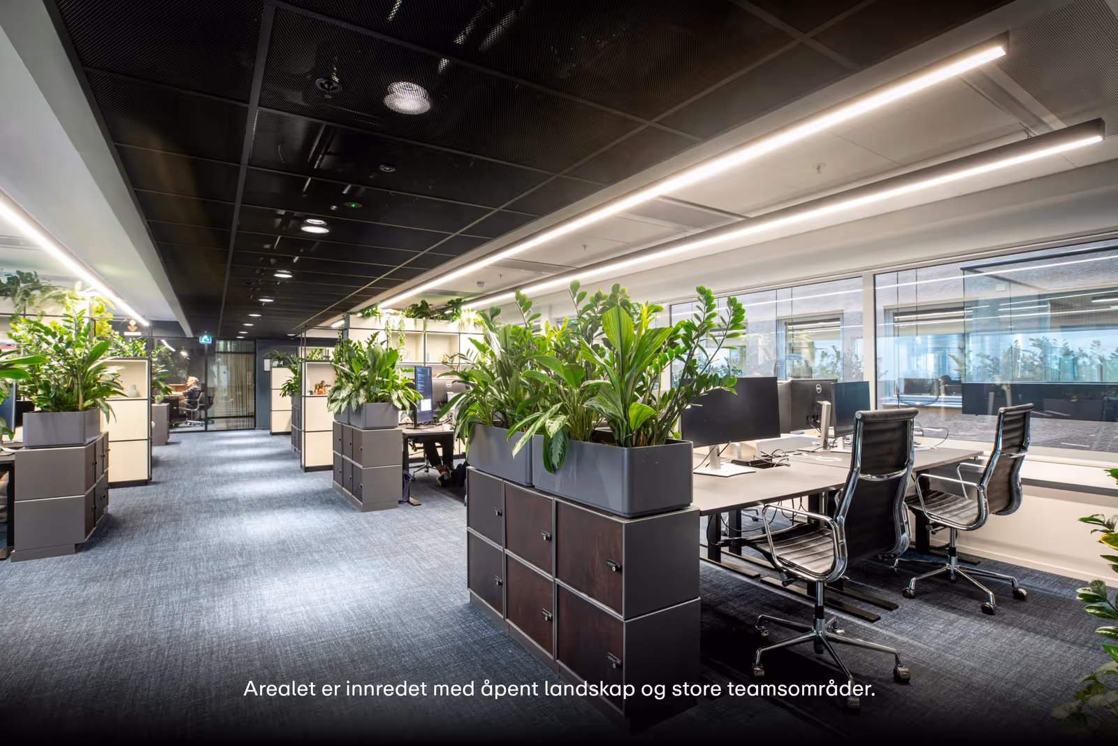 Arealet er innredet med åpne landskap, romslige teamsområder, flere møterom og stille soner – ideelt for virksomheter med fokus på samhandling og fleksibilitet. Lokalene holder høy standard og kan leies ut som de står ("as-is"), eller med mulighet for mindre tilpasninger etter leietakers behov.