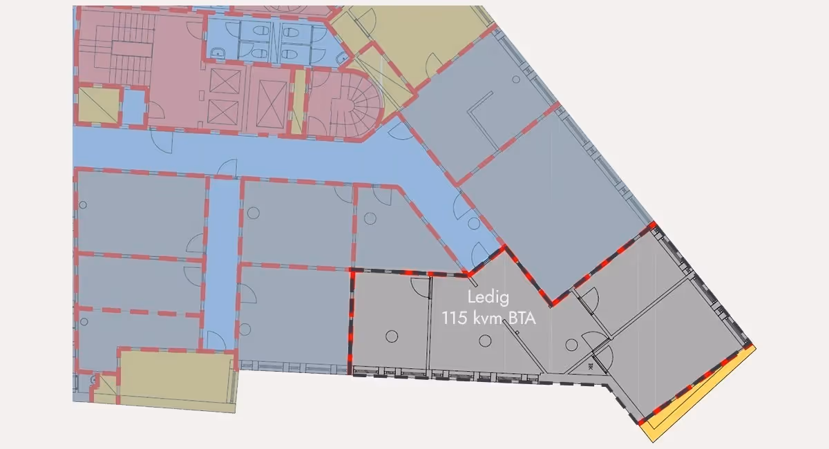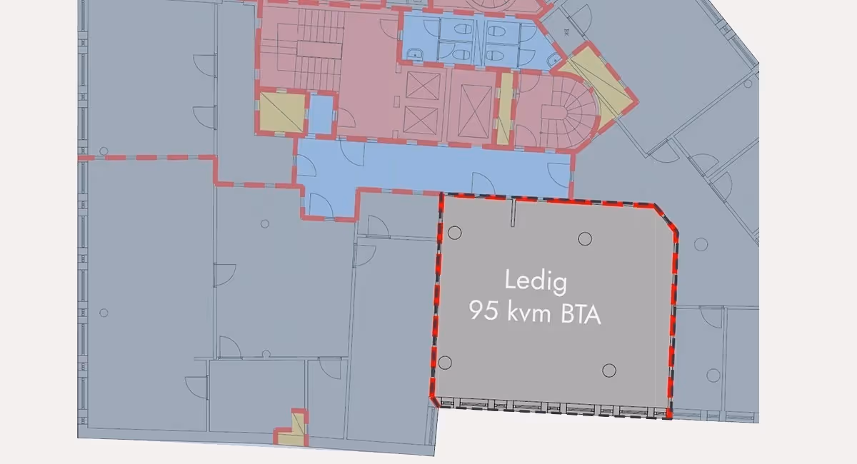 Arealet på 95 kvm BTA har en enkel standard og består av ett stort rom med kjøkken, og kan egne seg for kontorplasser med åpen løsning. Lokalet på 115 kvm BTA er inndelt i cellekontorer og er innflyttingsklart, men kan også tilpasses for en åpen kontorløsning eller en kombinasjon. I samarbeid med ny leietaker vil vi finne den optimale løsningen og tilpasse lokalene etter deres behov. Eiendommen er kun 250 m fra Jernbanetorget og Oslo Sentralstasjon med alt av kollektiv transport, og egner seg godt for virksomheter som ønsker sentral beliggenhet og enkel adkomst for sine ansatte og kunder.