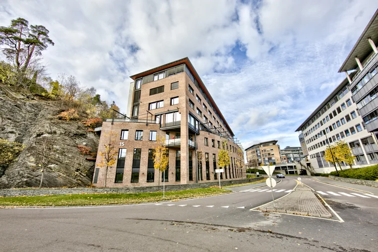 Strandveien 17 på Lysaker er en moderne næringseiendom fra 1998 på totalt 12 637 kvm, med tidsriktige kontorlokaler og gode fellesfasiliteter som kantine, møterom, heis, garasje og elbillading – et representativt næringslokale for leie med høy standard og profesjonelt preg.