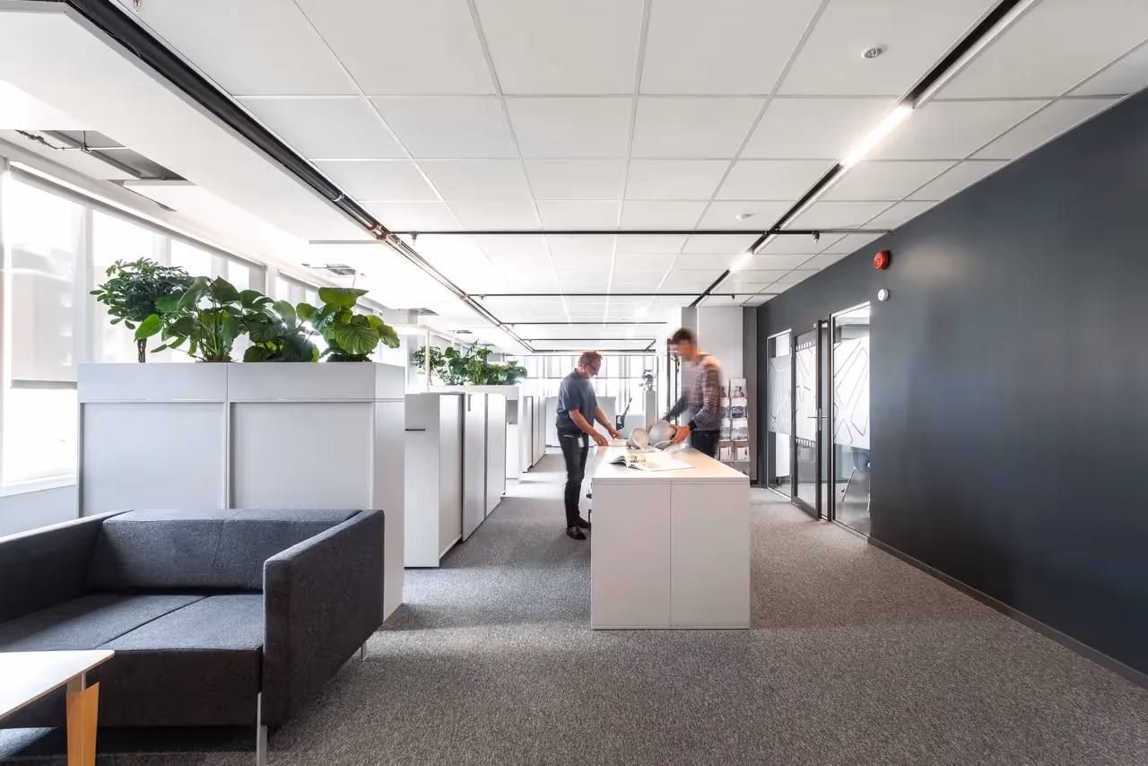 Planløsningene i kontoretasjene er planlagt for å være mest mulig fleksible. Lukkede rom er planlagt nærmest tekniske rom for å ha en ekstra himlingshøyde i kontorlandskapet. Ved å plassere kjøkken sentralt rundt kjernen så oppnår en kortere føringsveier noe som er en fordel for energiforbruket og fleksibiliteten. Åpne kontorlandskap ut mot fasaden gir gode lyse lokaler.