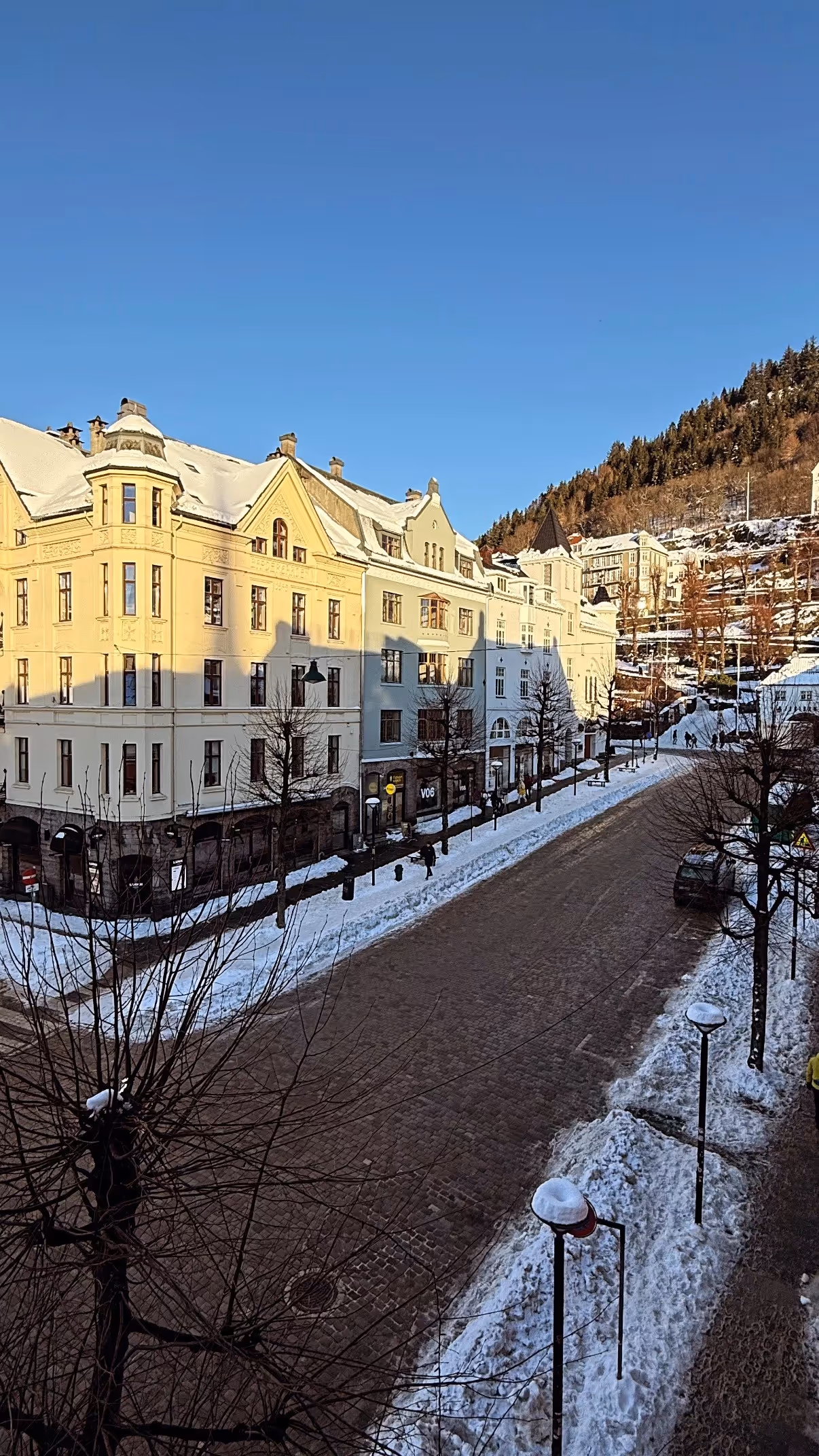 Eiendommen ligger i gaten på vei opp til Fløybanen. Eiendommen har flott utsikt mot bryggen og mot fjellene.